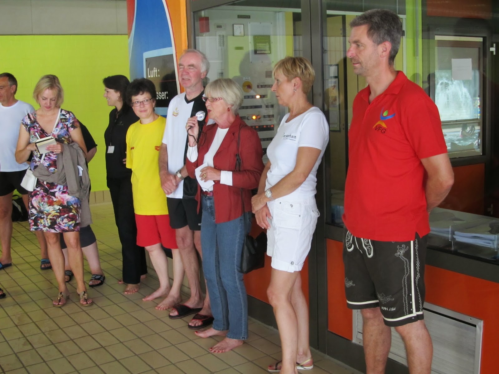 Zum Auftakt hatten die stellvertretende Bürgermeisterin Heidi Wiens und unser Fördervereinsvorsitzender Reinhold Poloczek die Besucherinnen und Besucher begrüßt. Heidi Wiens dankte unserem Förderverein für das große Engagement fürs Hallenbad und wünschte allen Kindern viel Spaß bei den Wettkämpfen: „Und denkt daran, dass man nicht immer der Gewinner sein kann.“ Das nahmen die sich offenbar zu Herzen, denn die Stimmung war durchgehend fröhlich und harmonisch.